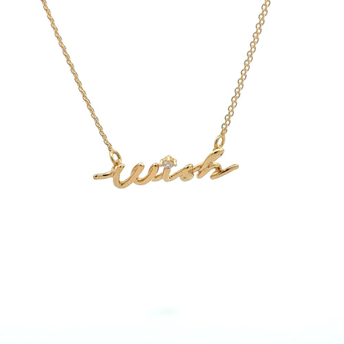18K Gold Necklace Chain Wish Cubic Zirconia 17 inches 1 inch extension 2.43 grams