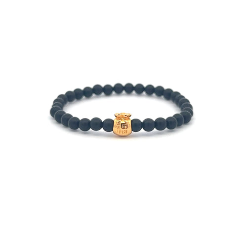 18K Gold Money Bag Matte Onyx Gemstones 4mm Mini 6mm Lucky Charm Elastic Bracelet