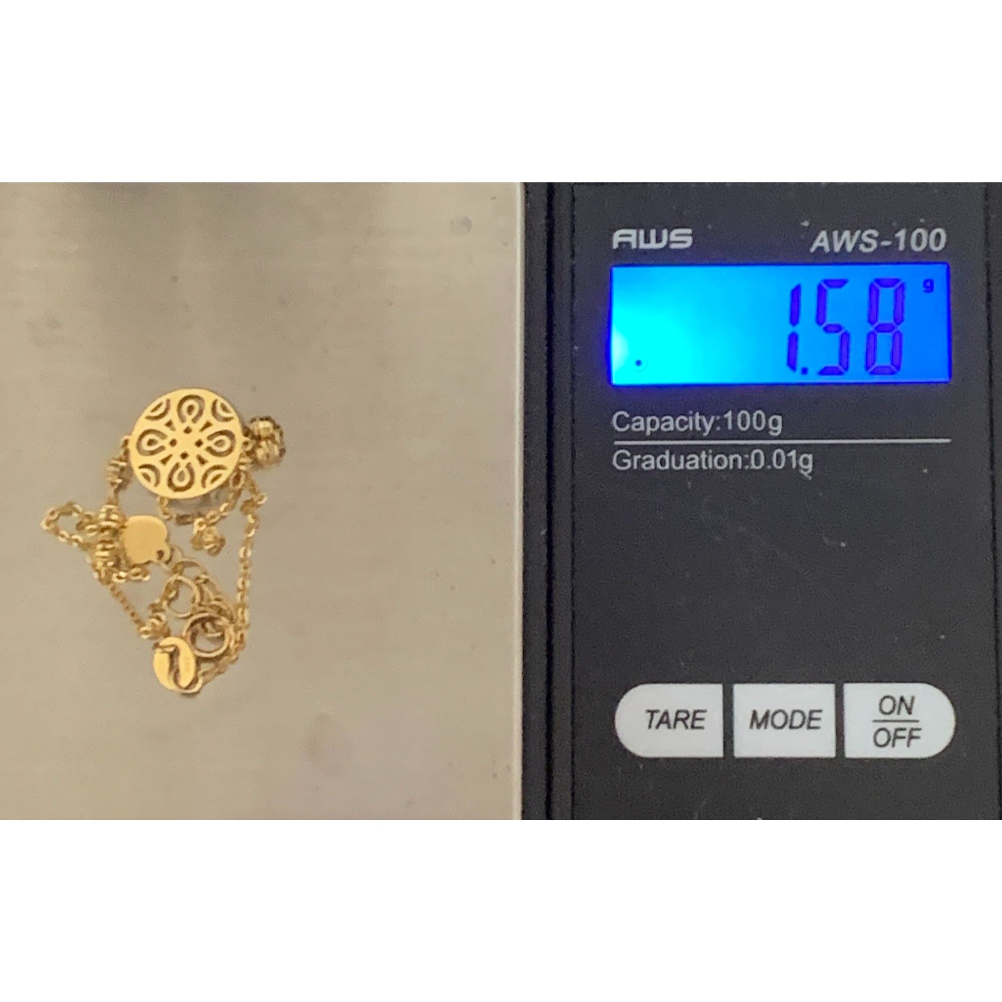 Weight: 1.58 grams. Please refer to pics for measurements.