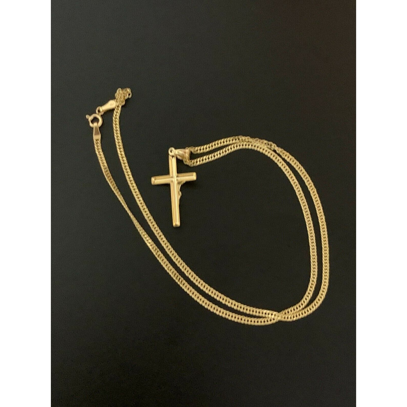 New Real 18K Saudi Gold Necklace 18" Chain with Cross Pendant Back to Back.