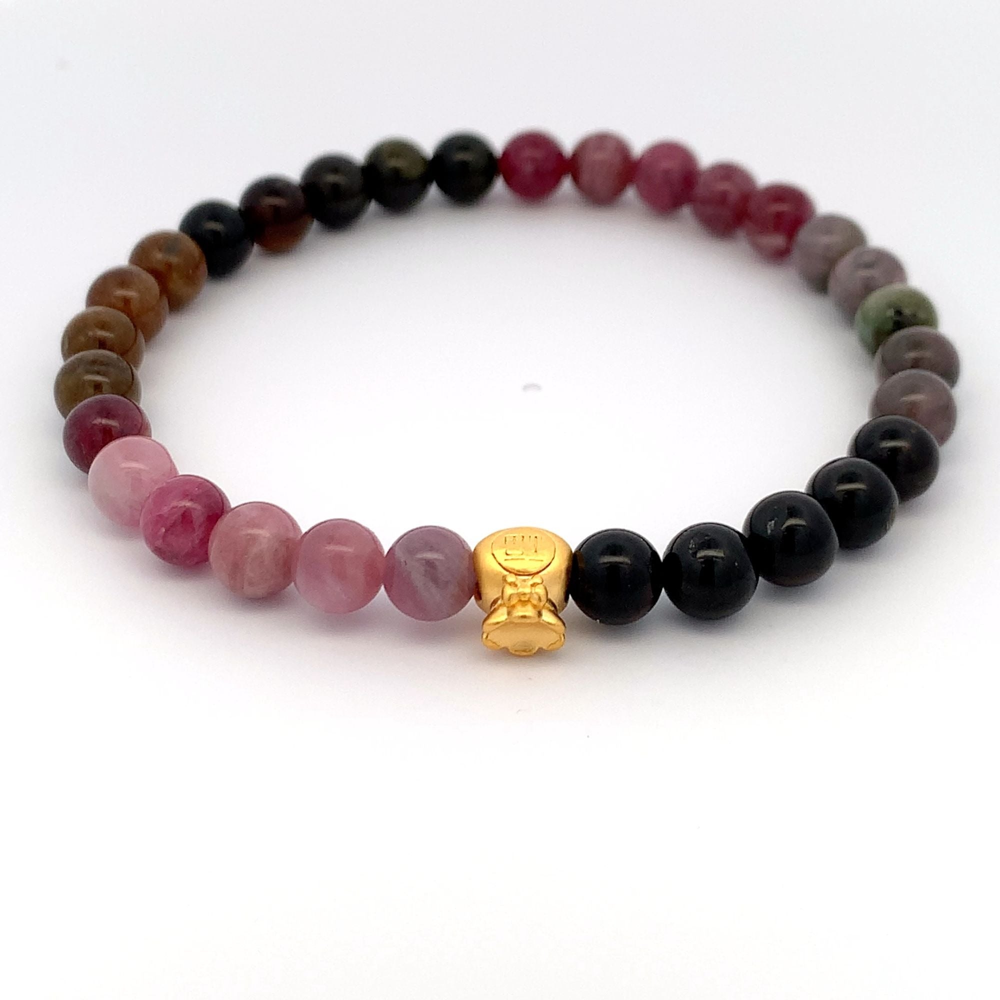 Material : 24K Gold Charm/ Natural Watermelon Tourmaline Gemstones.