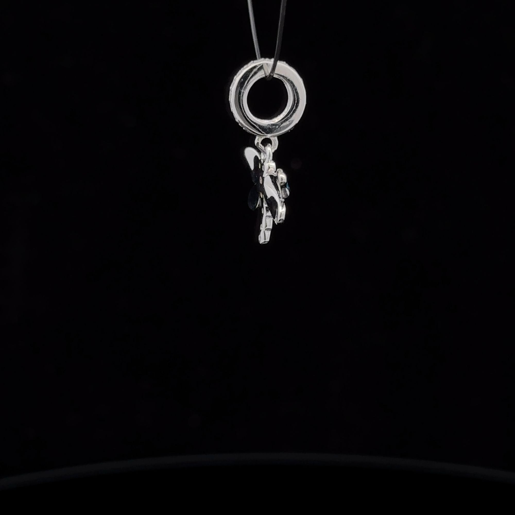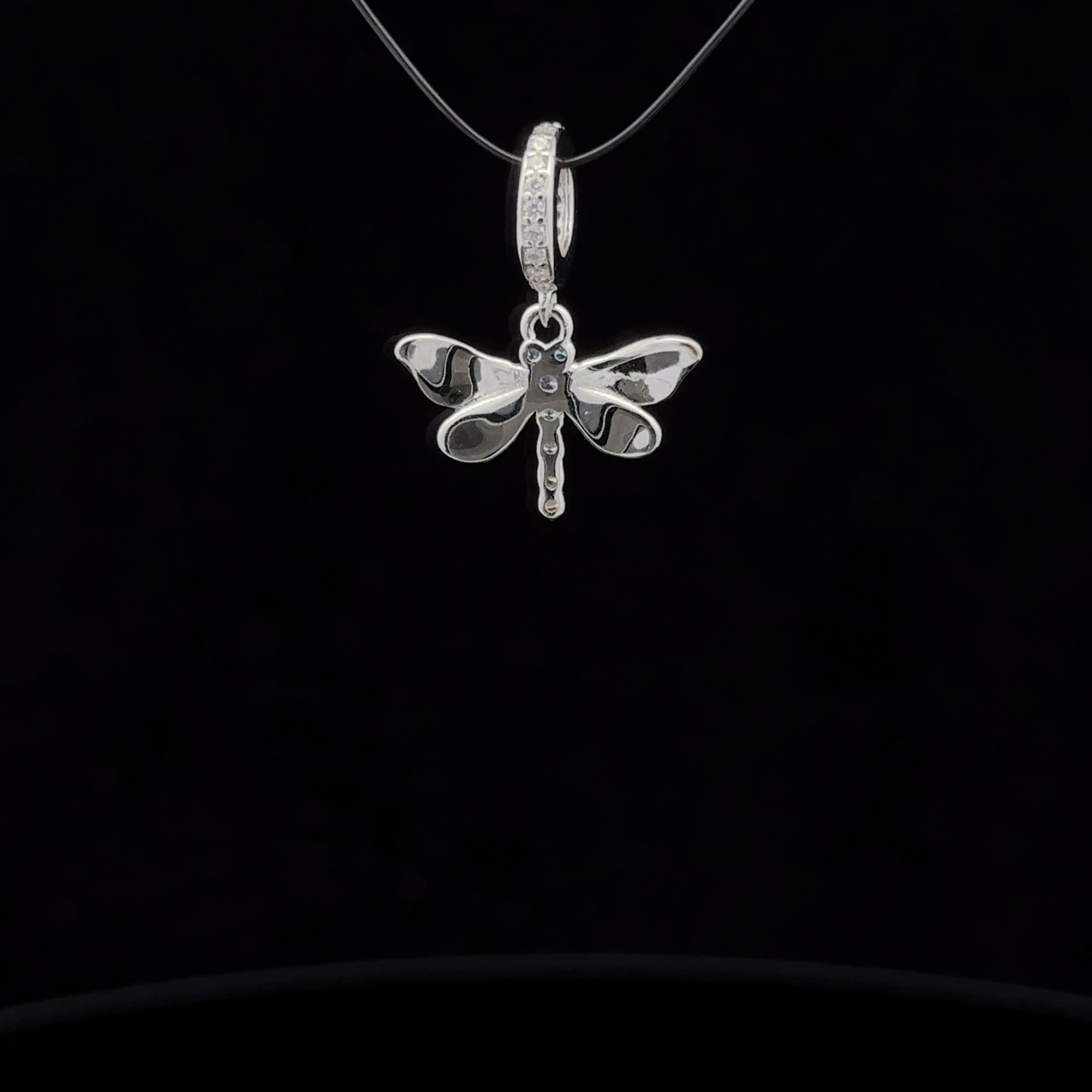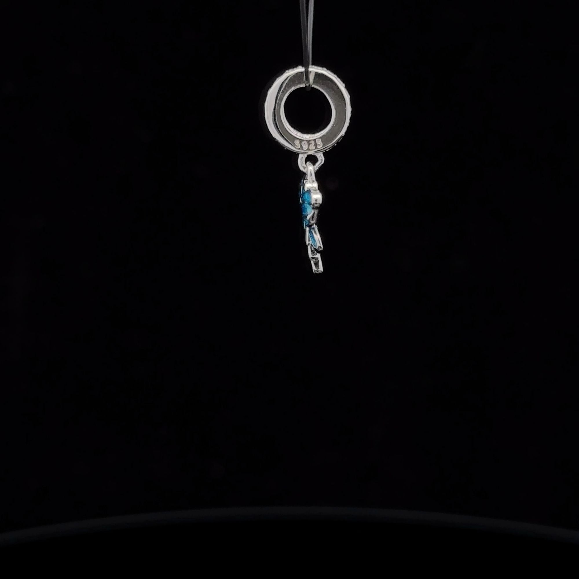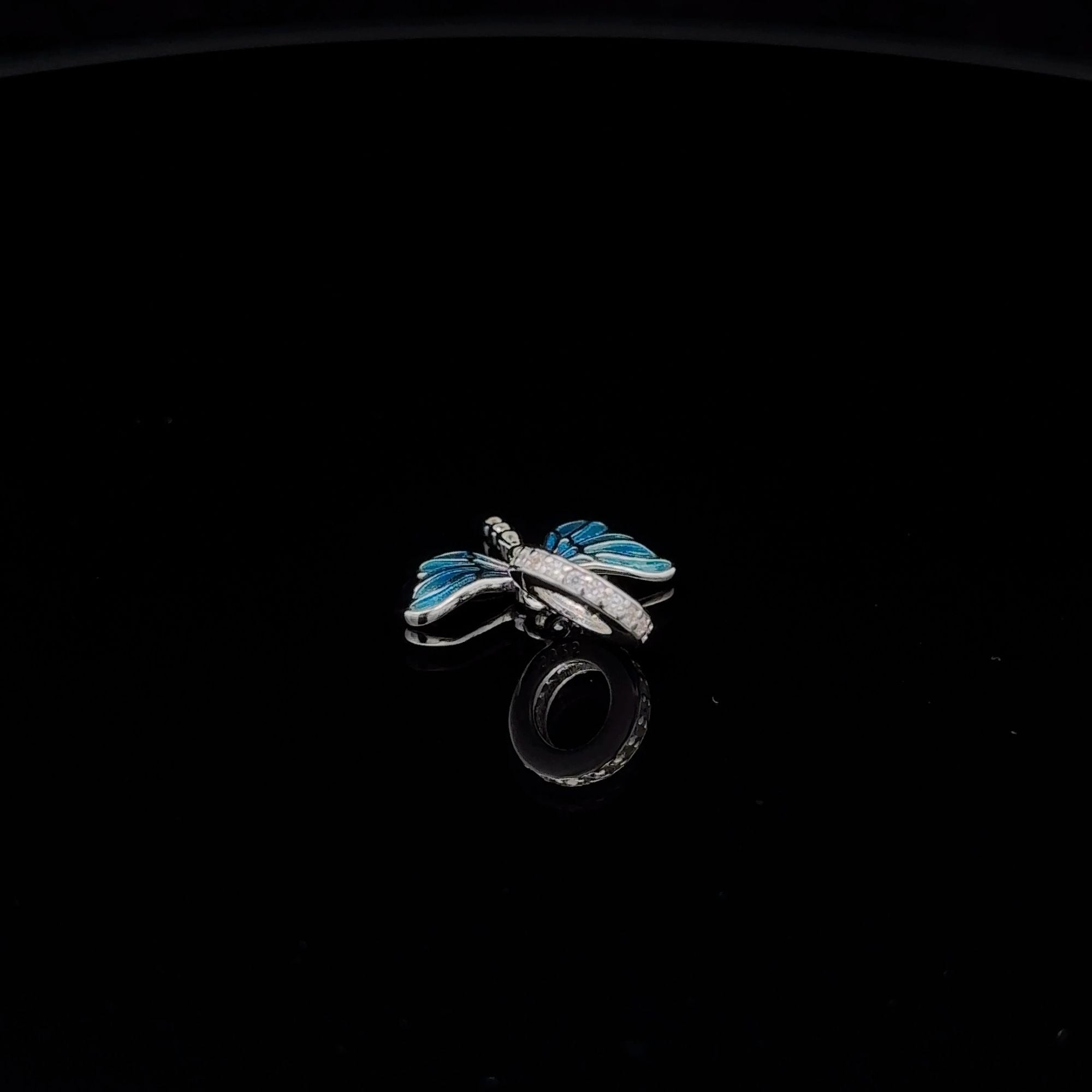 Dragonfly with cubic zircons and blue enamel. Fits bracelet and necklace up to 4mm in width/diameter.