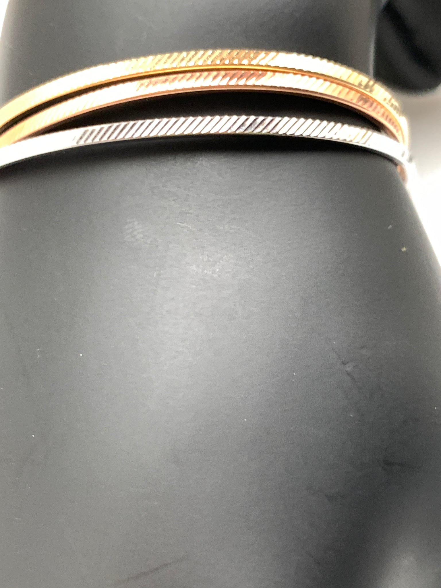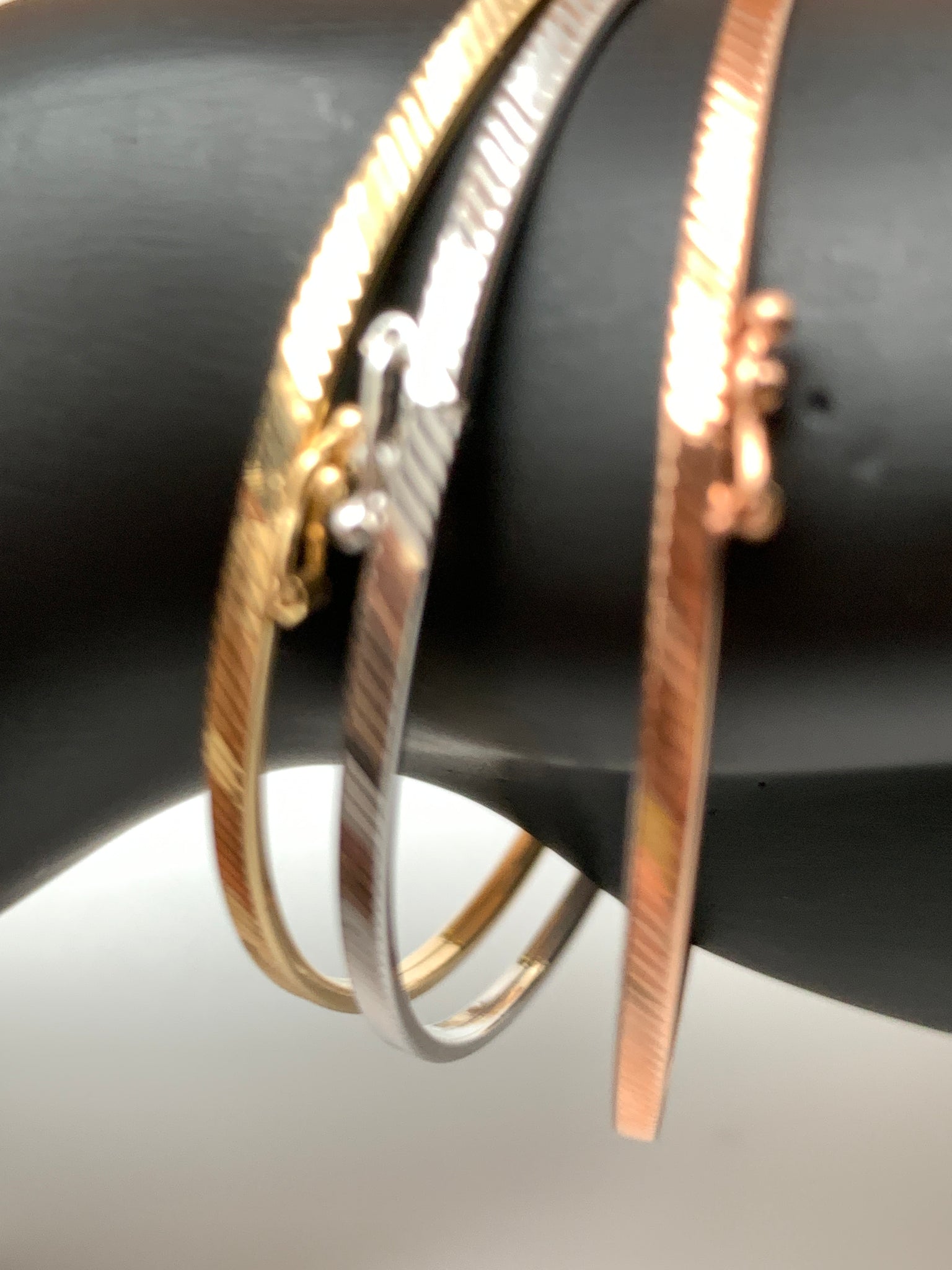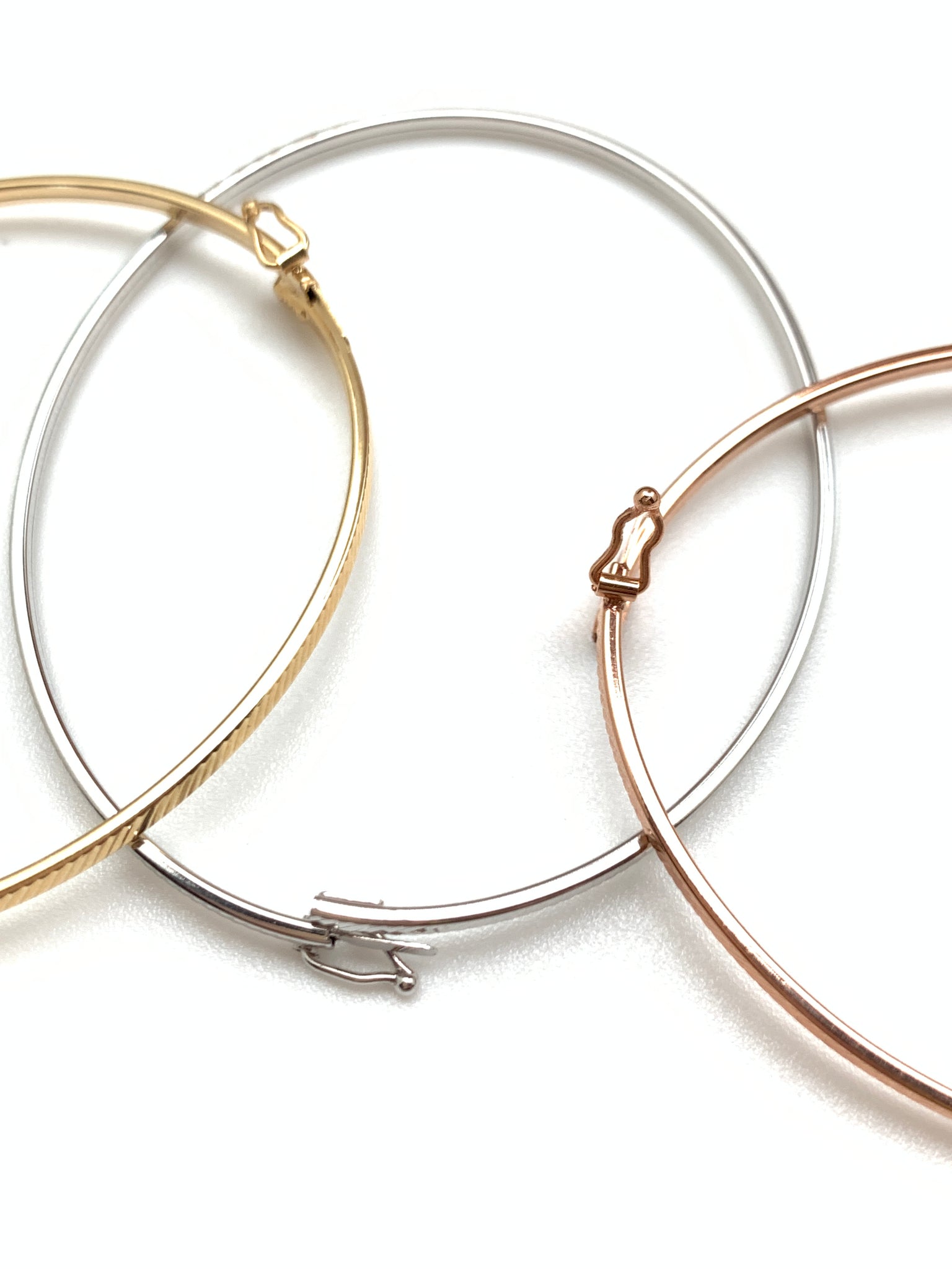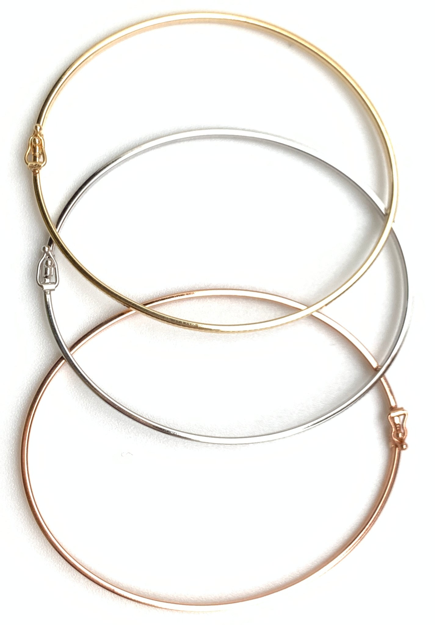New Real 18K Saudi Gold Oval Oblong Bracelets/Bangles Three Tones White/Rose/Yellow Gold. Comes with jewelry gift box or jewelry pouch.
